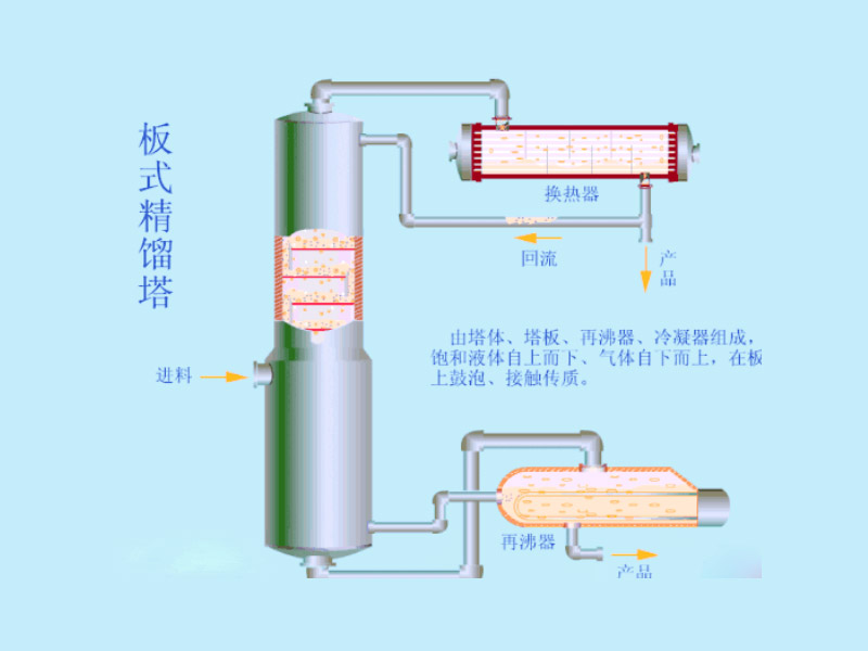 l 冷凝器:冷凝塔頂蒸汽,部分回流至塔內(nèi),部分作為產(chǎn)品采出。 ?